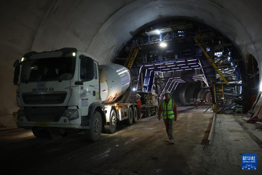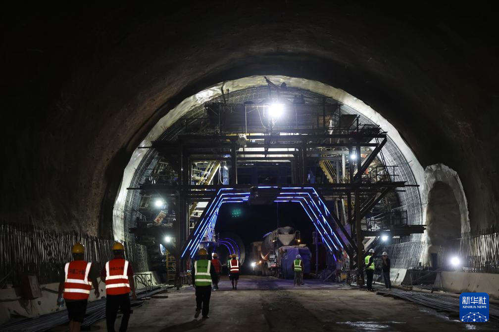 6月6日,中铁二十局的建设者在兰合铁路赵湾隧道内作业。新华社记者 陈斌 摄
