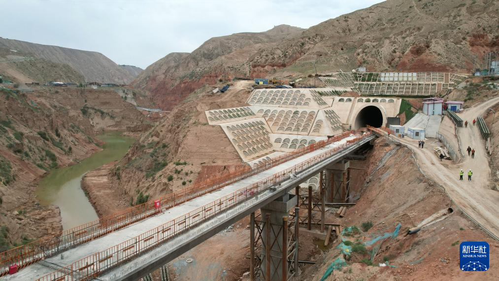 这是已经贯通的兰合铁路赵湾隧道(6月6日摄,无人机照片)。新华社记者 陈斌 摄
