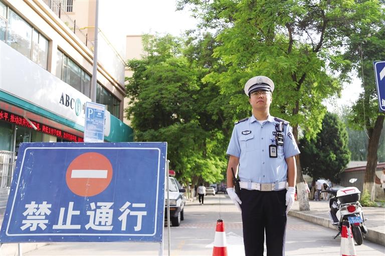 交警值守考点 兰州日报社全媒体记者 滕效宏 摄