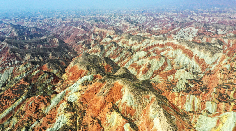 高空俯瞰兰州水墨丹霞。新华社记者 陈斌摄